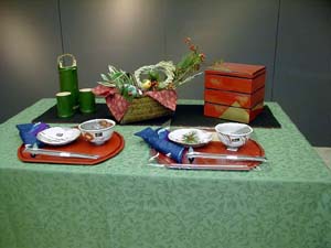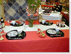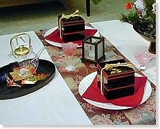 〜コンセプト〜 日本人にとって年間の最大行事であるお正月。 何かとあわただしい現代、お正月くらいは家でゆっくりと家族でお食事ができれば・・・ という思いをこめてセッティングしました。 〜料理〜 おせち料理(お重) 紅白なます お雑煮 〜飲み物〜 お屠蘇