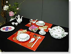 | 教室主宰長谷川貴子監修のもと、テーブル&フラワースクール成城講師研究科メンバーによる、器と花の華やかなコーディネート | ||||||||||||||