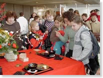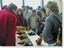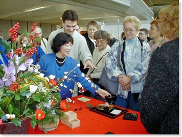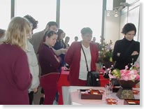 展示をした「プラハ コングレス センター」は、美しいプラハの旧市街が一望できるヨーロッパ屈指の複合施設(国際会議場、展示場、コンサートホールです。このセンターでは、展示後の2002年11月21日〜22日には、NATOサミットが開催されました。)です。8日には、プラハ市長にもテーブルコーディネート展示をご覧いただきました。また、プラハの方々にも、とても興味をもって展示をご覧いただき連日、展示室に入りきれないほど多くの方においでいただきました。 会場では、日本語、英語、ドイツ語、チェコ語の4カ国語によるセミナ−をいたしました。